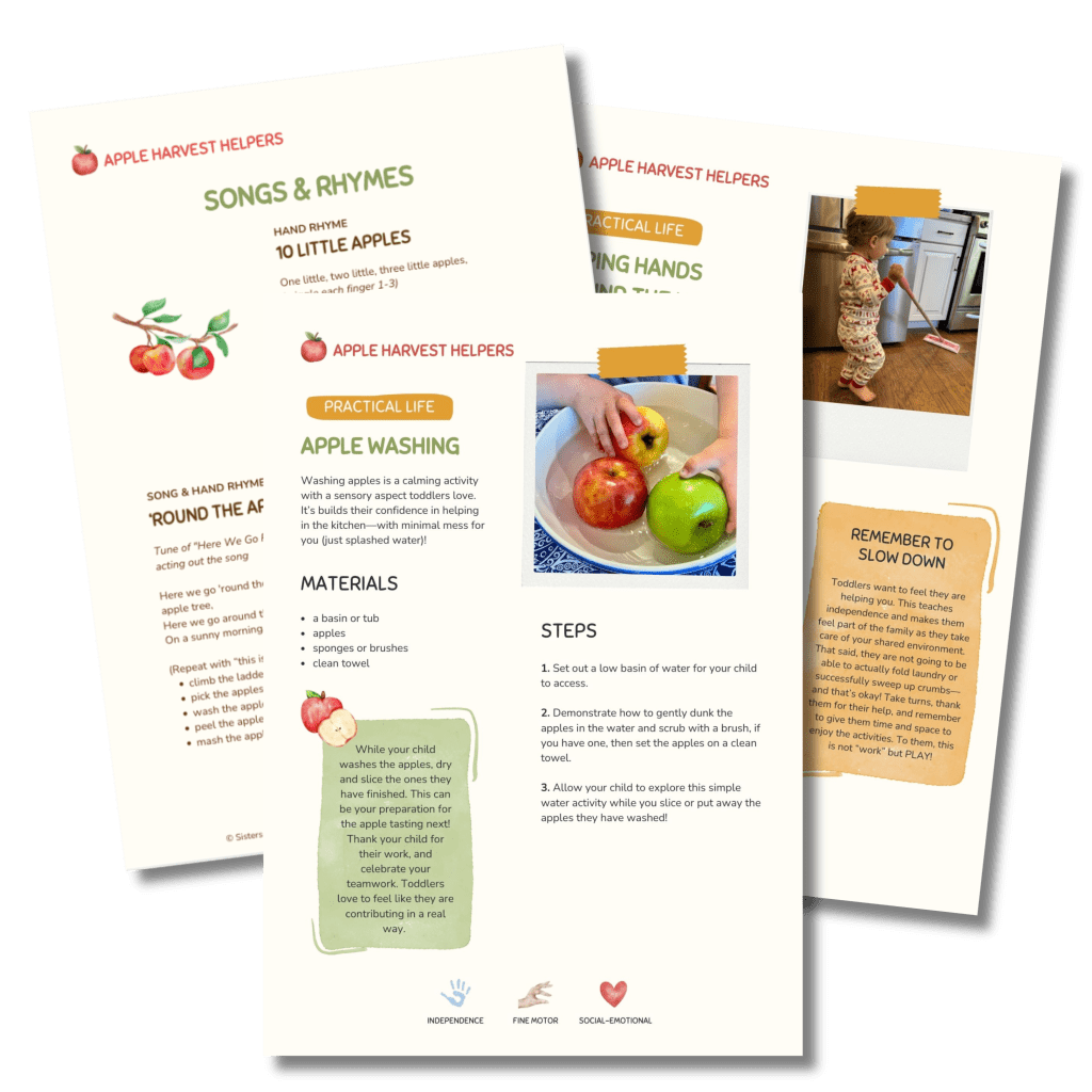 Welcome! We’re two sisters who had our babies three months apart. Alyssa is a kindergarten teacher and mom to a sweet, social girl. Ashley is a former nanny turned writer raising a quiet, curious boy. Now, we’re raising our littles one side by side… while also creating a play-based, social-emotional curriculum for the littlest learners. We also podcast about parenting, toddler life, and our favorite activities twice a month. Hope to see you there!